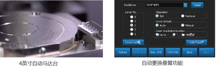 AFM5500M是操作性和測量精度大幅提高,配備4英寸自動馬達臺的全自動型原子力顯微鏡。設備在懸臂更換,激光對中,測試參數設置等環節上提供全自動操作平臺。新開發的高精度掃描器和低噪音3軸感應器使測量精度大幅提高。并且,通過SEM-AFM共享坐標樣品臺可輕松實現同一視野的相互觀察分析。