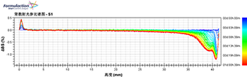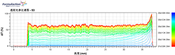 將得到的透射光或背散光的數據。第一次掃描為藍色,最后一次掃描為紅色。為了更好的看變 化,透射光或背散光的數據都被設置為參比模式,即以第一條線為參比,其余的線都和他相比較。 光強增加是正值,光強降低為負值。