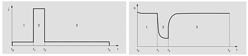 對于非牛頓流體,剪切速率是影響樣品性能的最重要因素之一。例如若將剪切增稠性流體輸入泵送系統中,如果設計的技術性能不合適,那么就可能會造成系統的異常終止,甚至會損壞設備。雖然這是一個極端的例子,然而剪切速率對于生產系統的影響是不可忽視的。
