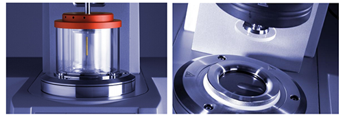 在標準流變測試時,我們要控制的條件只有樣品溫度、剪切速率或剪切力、形變、頻率等力學因素,而許多樣品在實際應用時,還有其他不同的外界因素會對樣品的流變性能產生影響,比如光、電、磁、壓力等等,下面這些就是針對這一類應用而設計的附件。