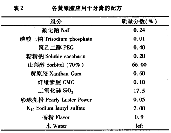 關鍵詞:黃原膠 牙膏 流變性