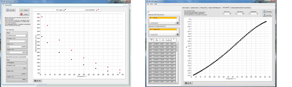 • 塞貝克系數與電導率曲線擬合,導入 LFA 的熱導率數據,最終計算 ZT 值