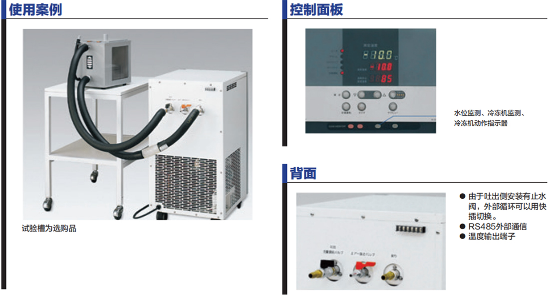 自診斷功能、過電流漏電保護開關、按鍵鎖、停電補償功能,還具有流量監視、冷凍機監視、冷凍機保護用延時計時器、流量異常、高壓異常、超溫保護器 |